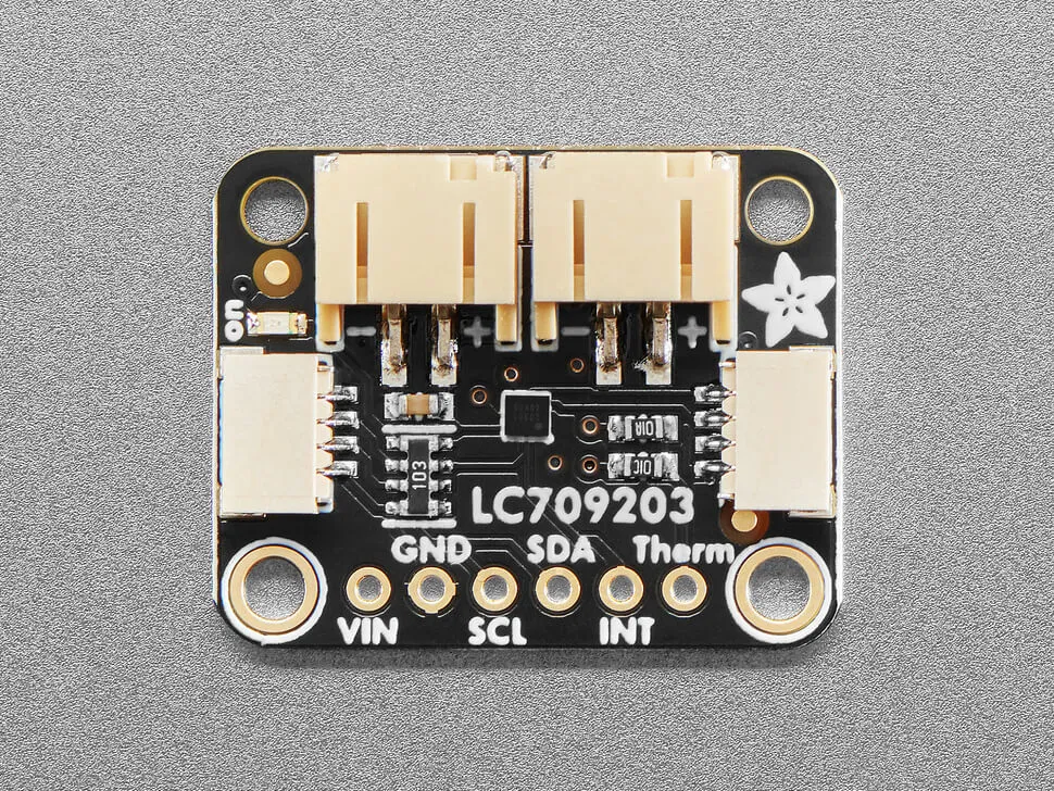 Special thanks to the authors and contributors for the MAX17043 and BME680 sensor components that I used extensively to learn how to create this component. Also, thanks to the authors of the Adafruit LC709203F Arduino library for example code showing how the communication and CRC calculations are done.